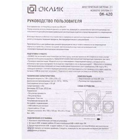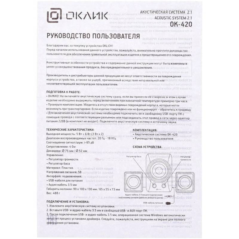 Колонки Оклик OK-420 2.1 черный 11Вт