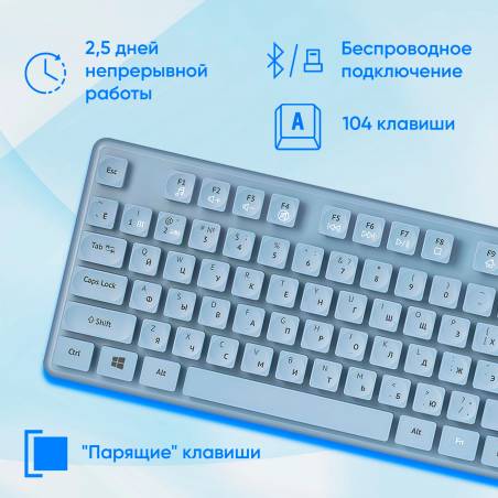 - Ресурс нажатий: до 10 000 000, "парящие клавиши", беспроводное подключение 2,4 ГГц и Bluetooth