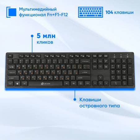 Клавиатура + мышь Оклик 240M клав:черный мышь:черный USB беспроводная slim Multimedia (1091253)