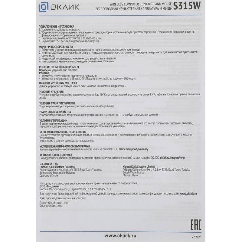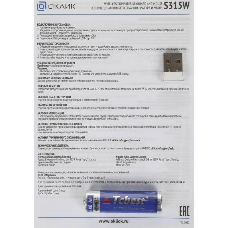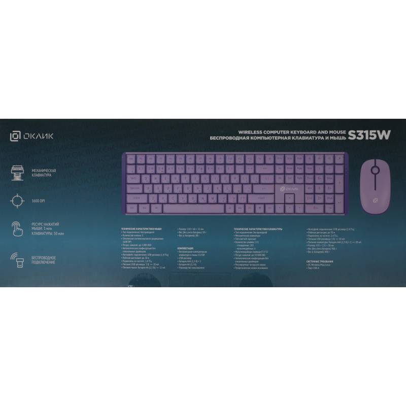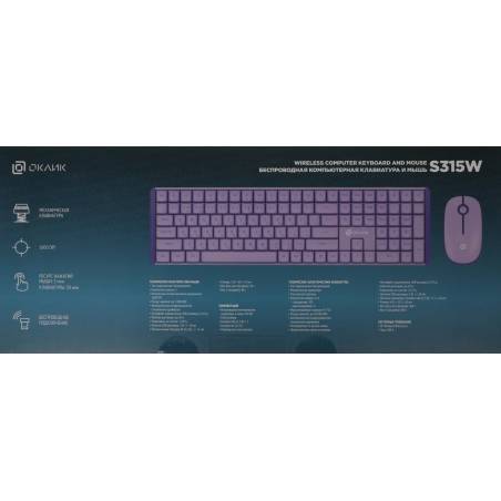 Клавиатура + мышь Оклик S315W клав:сиреневый мышь:сиреневый USB беспроводная Multimedia (1978643)
