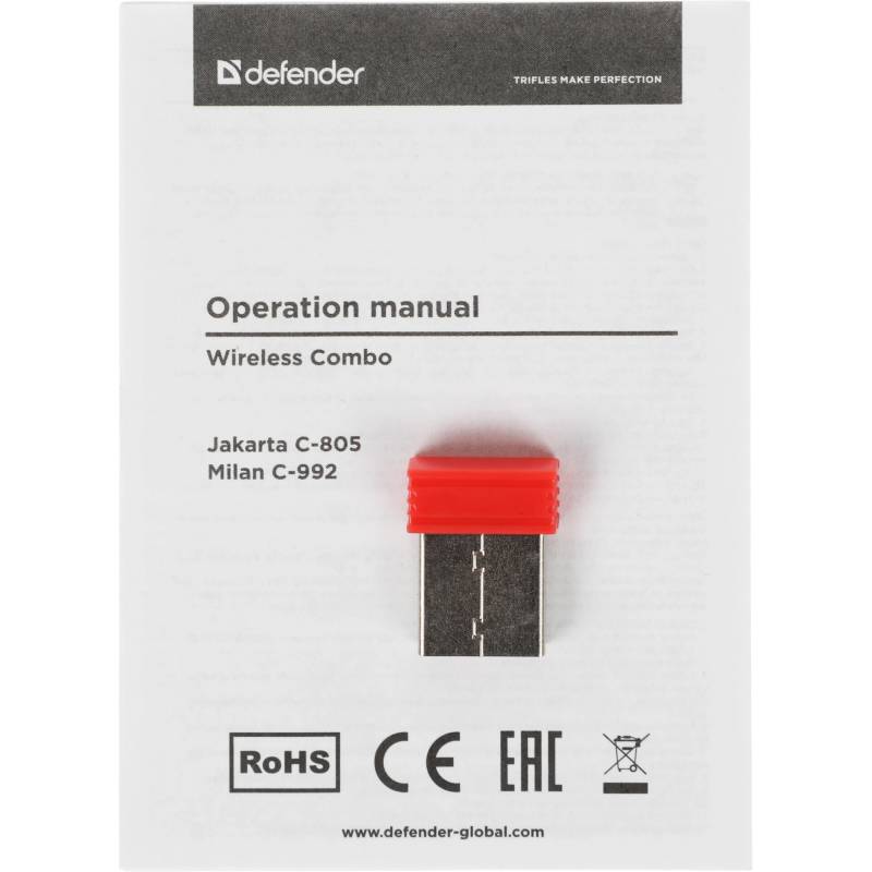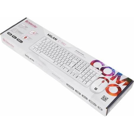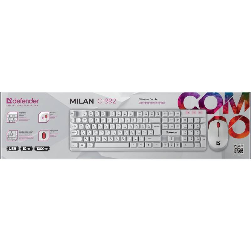 Клавиатура + мышь Defender Milan C-992 клав:белый мышь:белый/красный USB беспроводная Multimedia (45994)