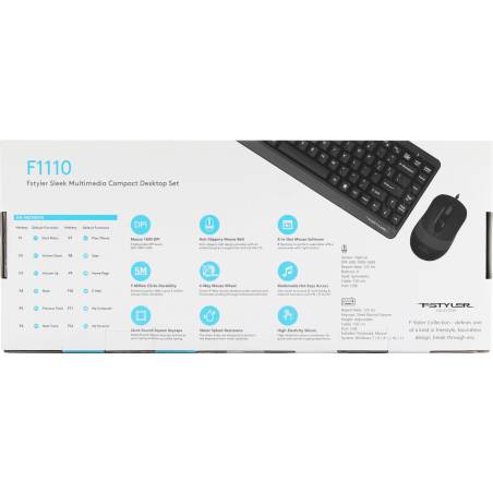 Клавиатура + мышь A4Tech Fstyler F1110 клав:черный/серый мышь:черный/серый USB Multimedia (F1110 GREY)