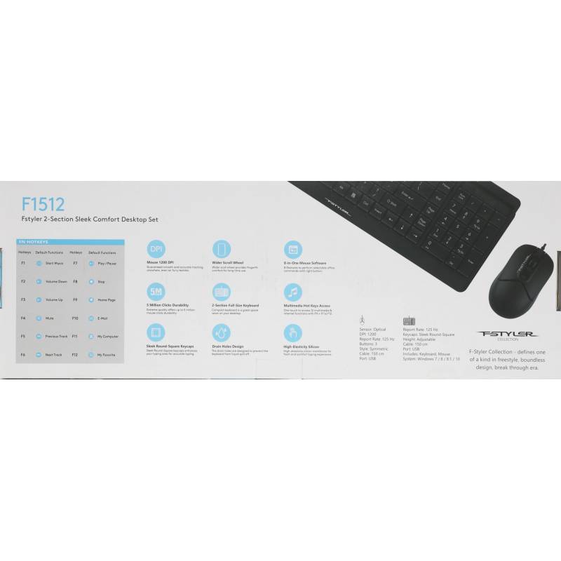 Клавиатура + мышь A4Tech Fstyler F1512 клав:черный мышь:черный USB (F1512 BLACK)
