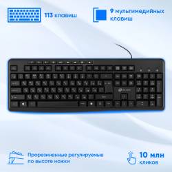 - Эргономичная клавиатура с продуманной конструкцией для работы дома и в офисе. Девайс оборудован регулируемыми по высоте ножками. Дополнительные мультимедийные и офисные клавиши обеспячат быстрый доступ и управление нужными приложениями.