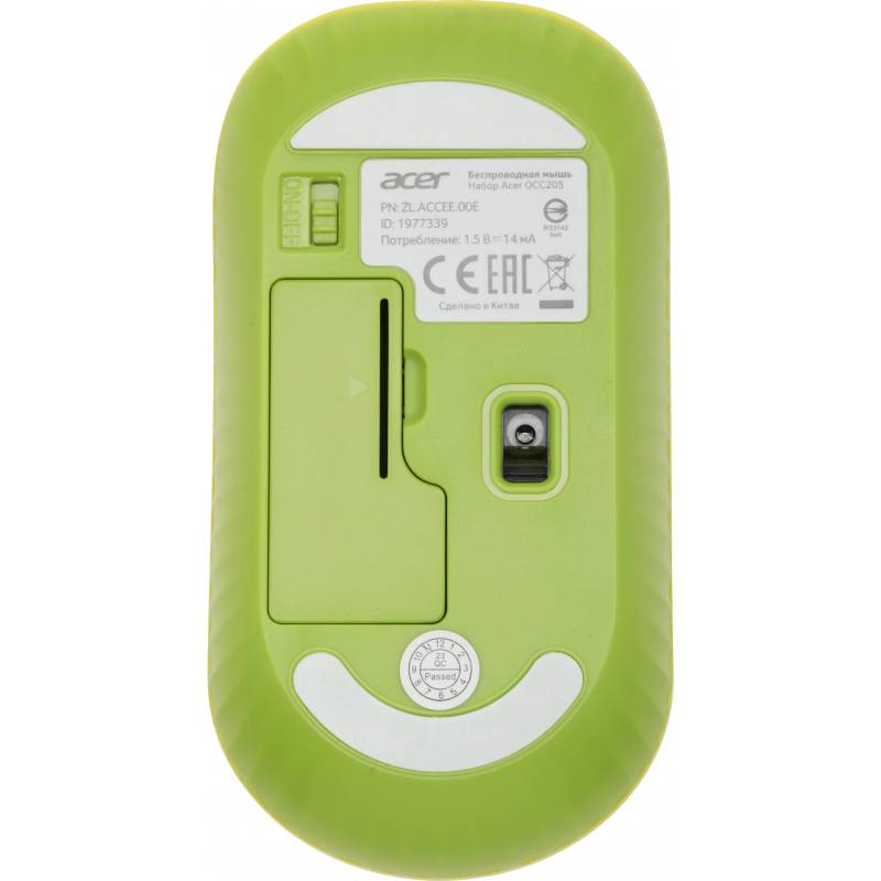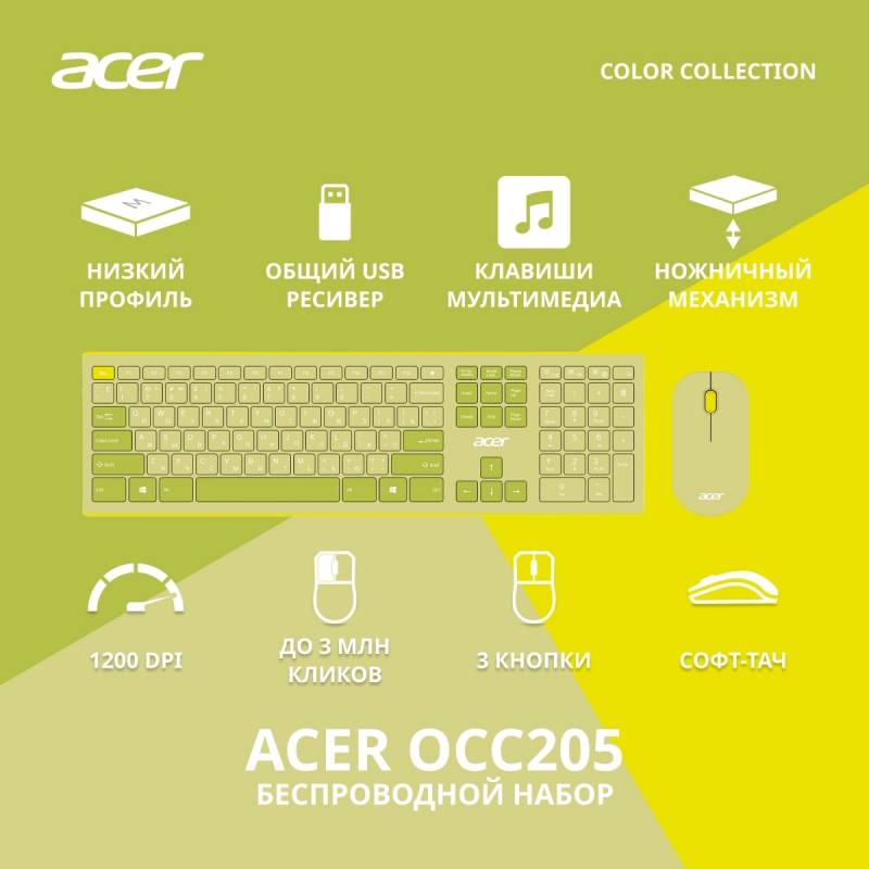 Клавиатура + мышь Acer OCC205 клав:зеленый/желтый мышь:зеленый/желтый USB беспроводная slim Multimedia (ZL.ACCEE.00E)