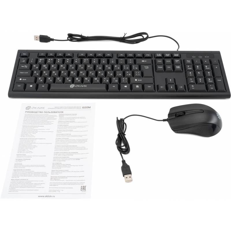 - Проводная компьютерная клавиатура и мышь 600M