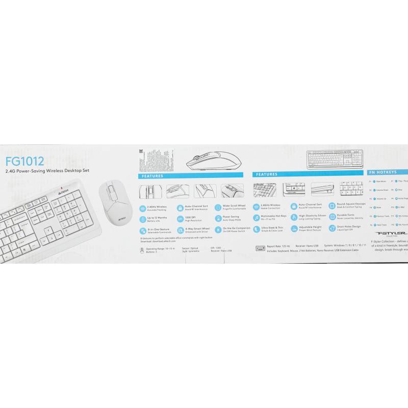 Клавиатура + мышь A4Tech Fstyler FG1012 клав:белый мышь:белый USB беспроводная Multimedia (FG1012 WHITE)