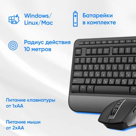 Клавиатура + мышь Оклик S290W клав:черный мышь:черный USB беспроводная Multimedia (351701)