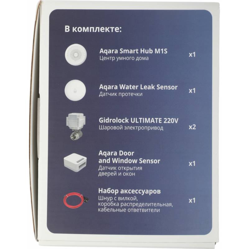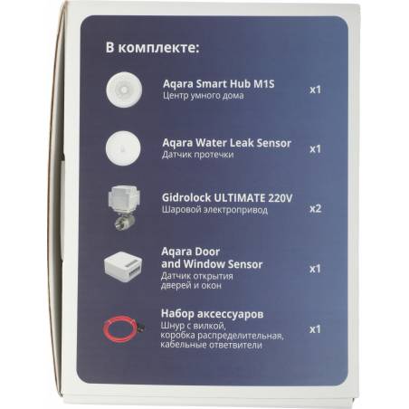 - Центр Умного дома M1S, Датчик протечки, Одноканальное реле Т1 с нейтралью, Шаровый электропривод – 2 шт., Шнур электрический с вилкой, Ответвитель питания (комплект), Распределительная коробка