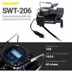 Автомобильный компрессор Swat SWT-206 60л/мин шланг 1м