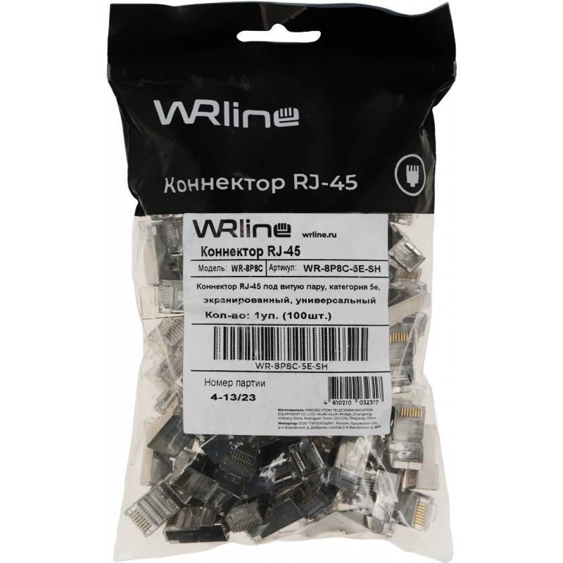 Коннектор WRline (WR-8P8C-5E-SH) FTP кат.5E RJ45 прозрачный (упак.:100шт)