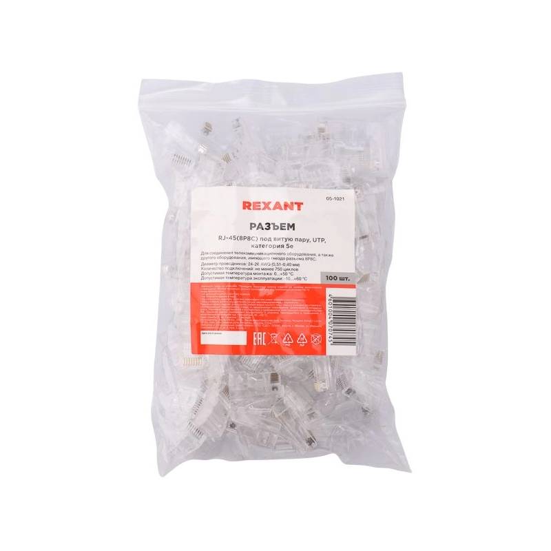 Коннектор Rexant (05-1021) UTP кат.5E RJ45 прозрачный