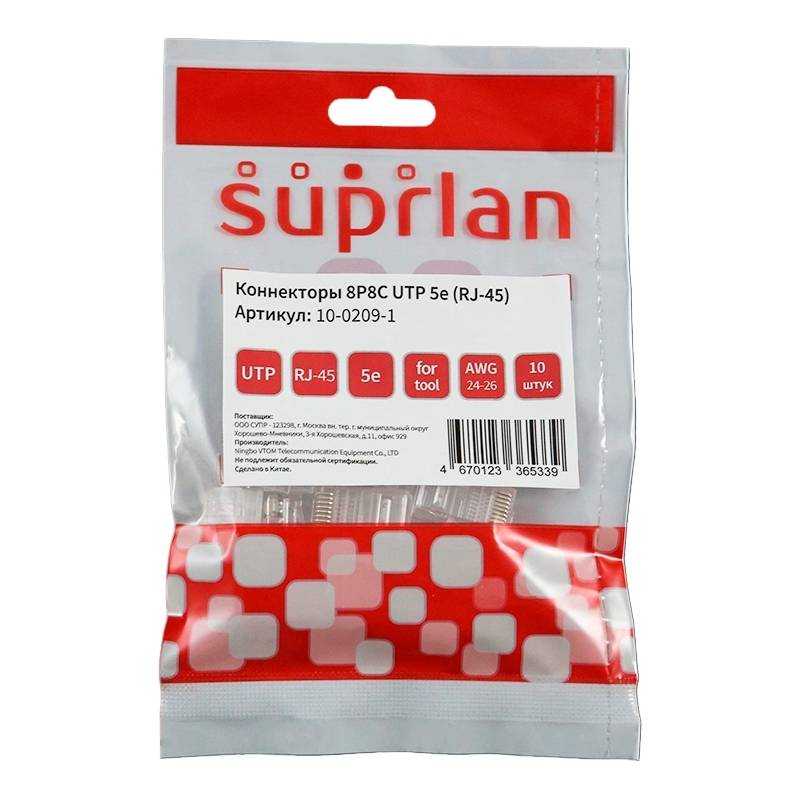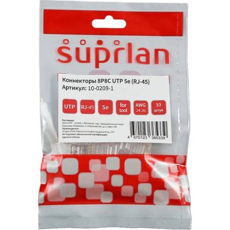 Коннектор Suprlan (10-0209-1) UTP кат.5E RJ45 прозрачный (упак.:10шт)