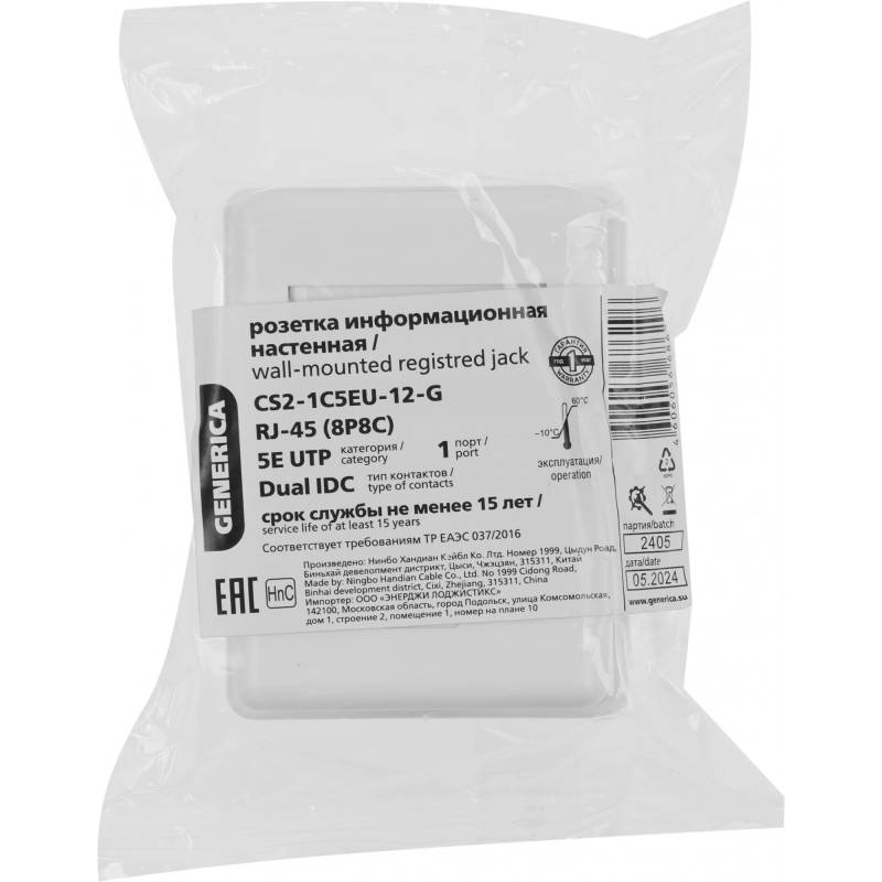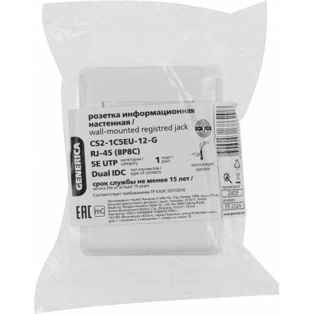 Розетка ITK CS2-1C5EU-12-G настенная 49.2x65.5x25.2мм RJ45 пластик белый
