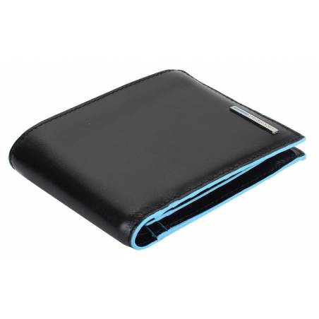 - Мужское портмоне Piquadro. Горизонтальное портмоне складывается пополам. Изделие выполнено из натуральной кожи. Отстрочено по краям и отделано голубым кантом. Переднюю часть украшает вертикальная металлическая вставка с гравировкой Piquadro и голубой поло