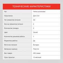 - Кол-во элементов питания