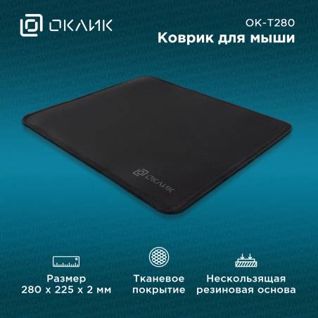 Коврик для мыши Оклик OK-T280 Мини черный 280x225x2мм
