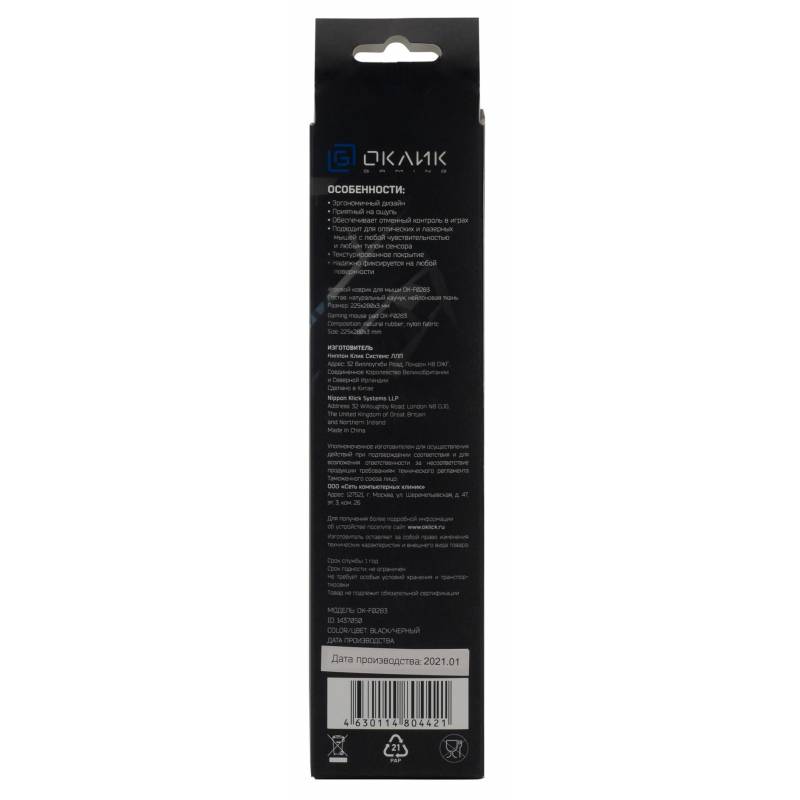 Коврик для мыши Оклик OK-F0283 Мини черный 280x225x3мм