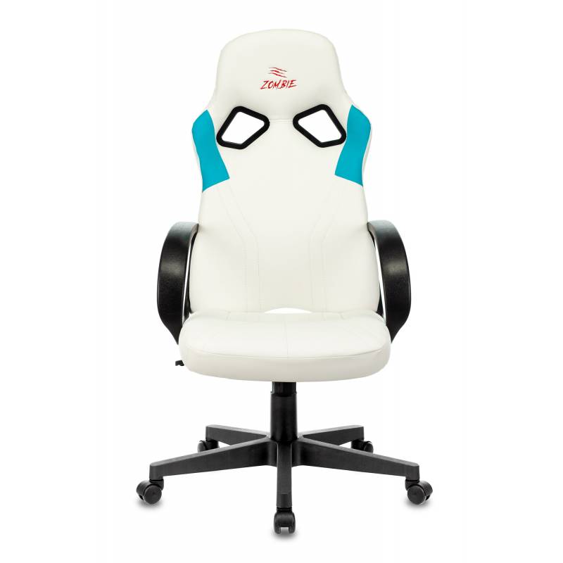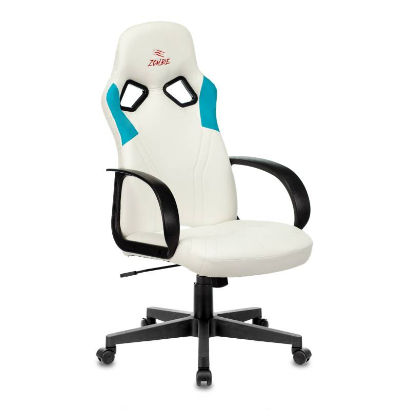 Кресло игровое Zombie RUNNER белый/голубой эко.кожа крестов. пластик