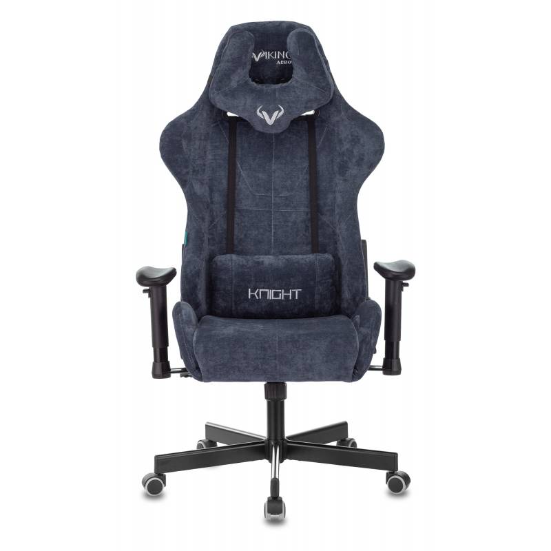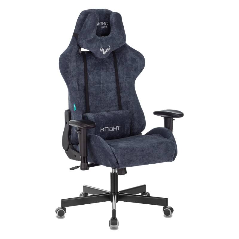 Кресло игровое Zombie VIKING KNIGHT Fabric синий Light-27 с подголов. крестов. металл