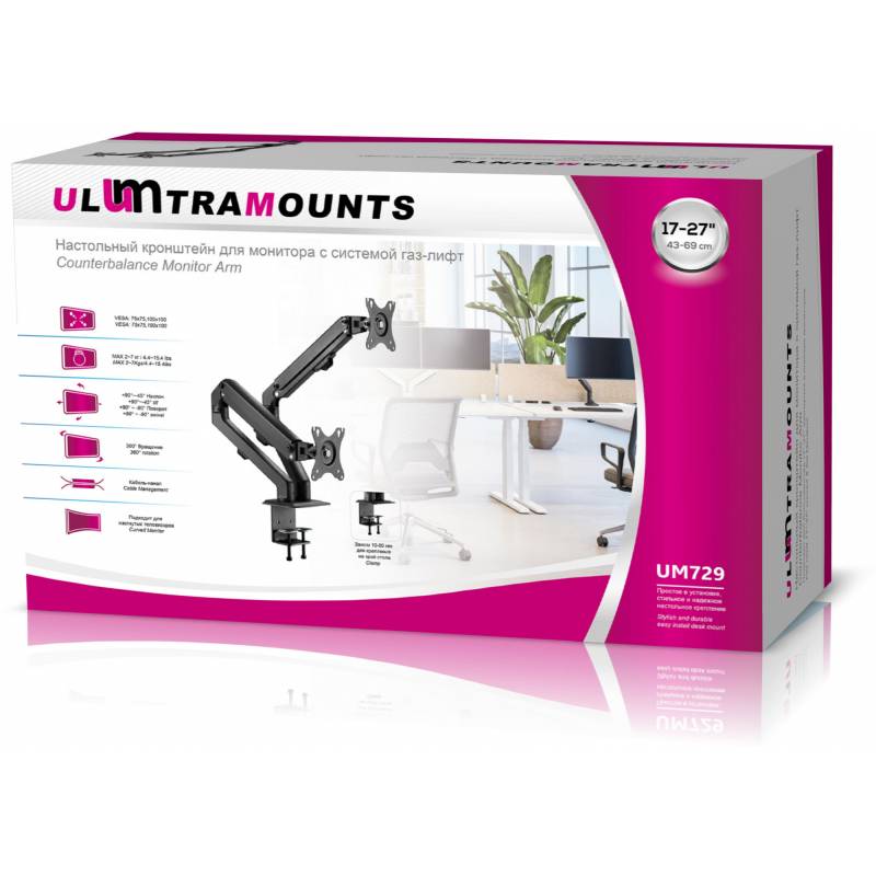 Кронштейн для мониторов Ultramounts UM729 черный 17"-27" макс.7кг крепление к столешнице поворот и наклон