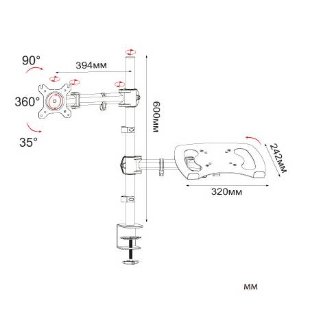 Кронштейн для монитора/ноутбука Cactus CS-VM-LH07-BK черный 13"-27" макс.8кг настольный поворот и наклон