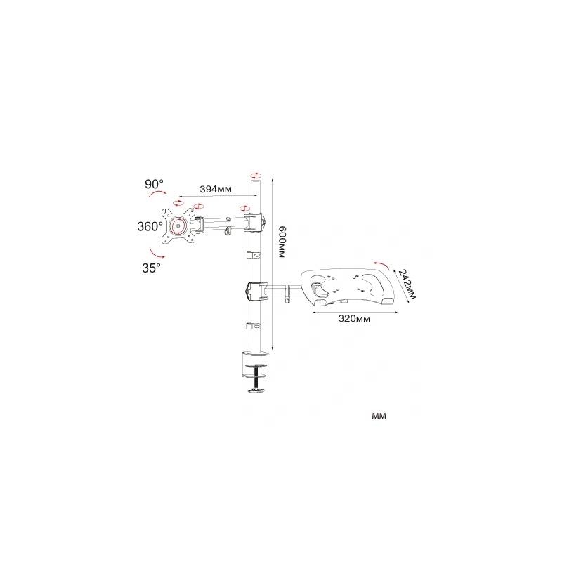 Кронштейн для монитора/ноутбука Cactus CS-VM-LH07-AL серебряный 13"-27" макс.8кг настольный поворот и наклон