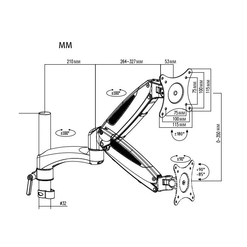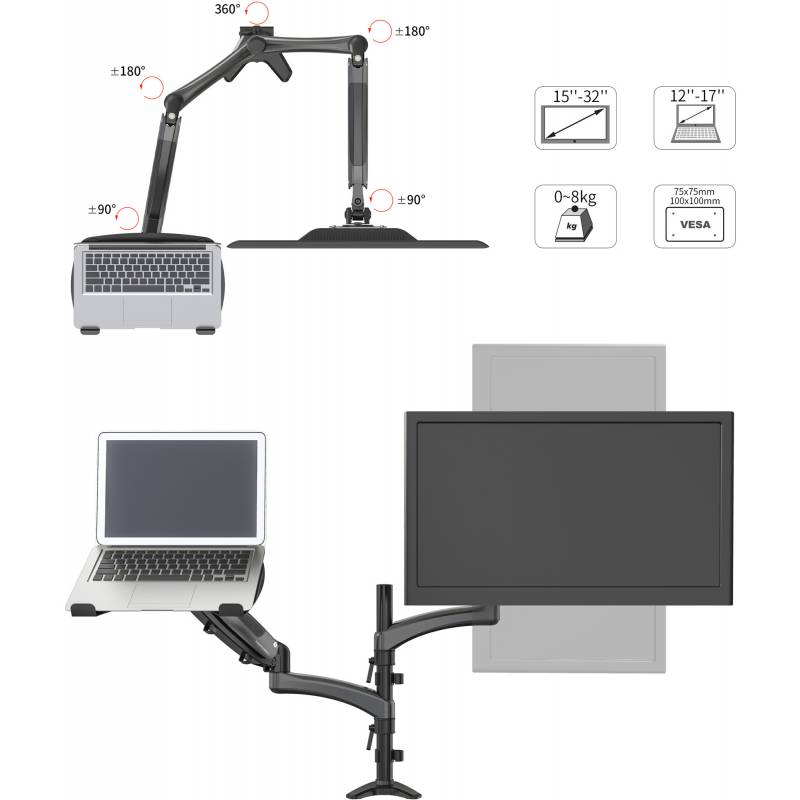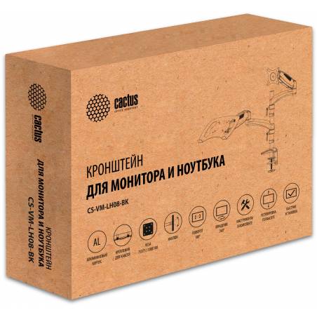 Кронштейн для монитора/ноутбука Cactus CS-VM-LH08-BK черный 13"-27" макс.8кг настольный поворот и наклон