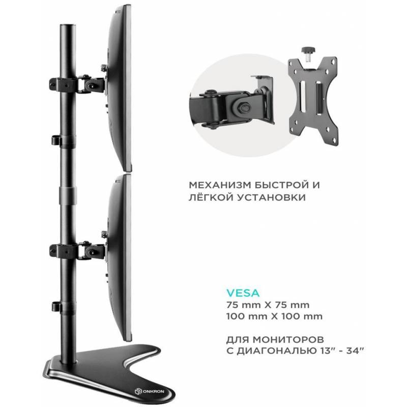 - Настольный кронштейн ONKRON D208FS подходит для мониторов диагональю от 13 до 34 дюймов и весом до 8 кг на каждый.