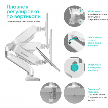 Кронштейн для мониторов Onkron G80W белый 13"-32" макс.8кг настольный поворот и наклон верт.перемещ.