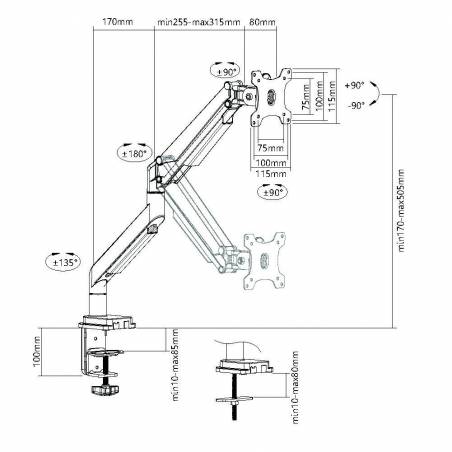 Кронштейн для мониторов Ultramounts UM708 серебристый 17"-32" макс.9кг крепление к столешнице поворот и наклон