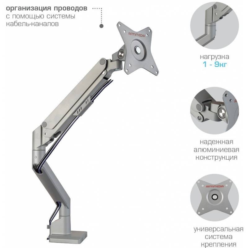 Кронштейн для мониторов Arm Media LCD-T35 серебристый 17"-34" макс.9кг настольный поворот и наклон верт.перемещ.