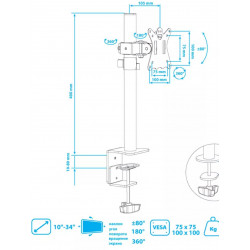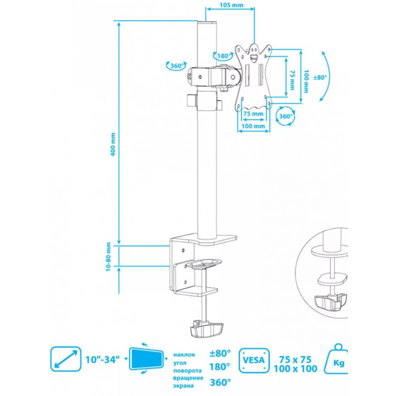 Кронштейн для мониторов Kromax CASPER-505 черный 10"-34" макс.10кг настольный поворот и наклон