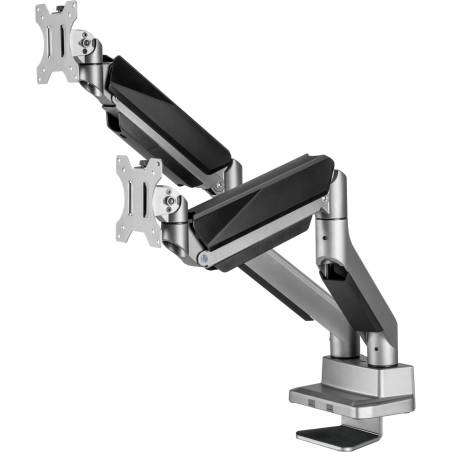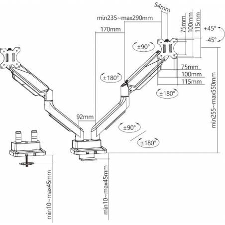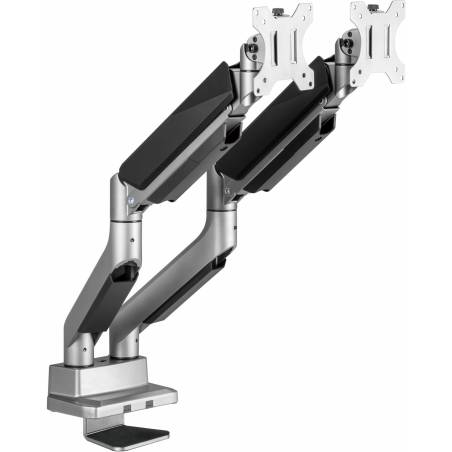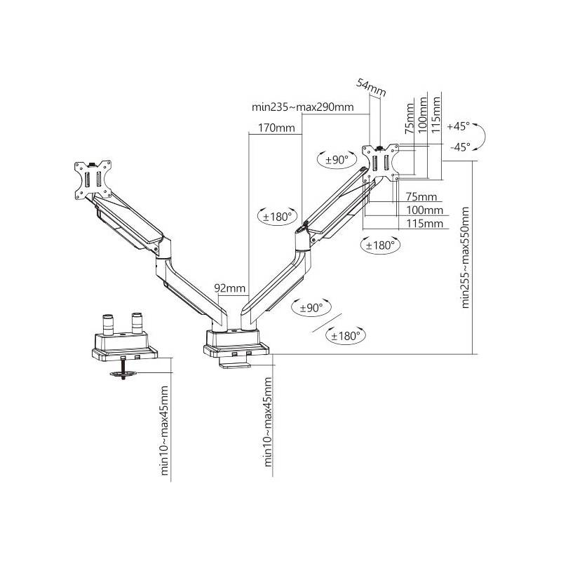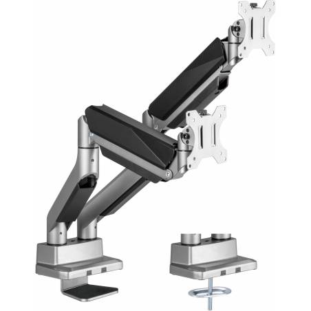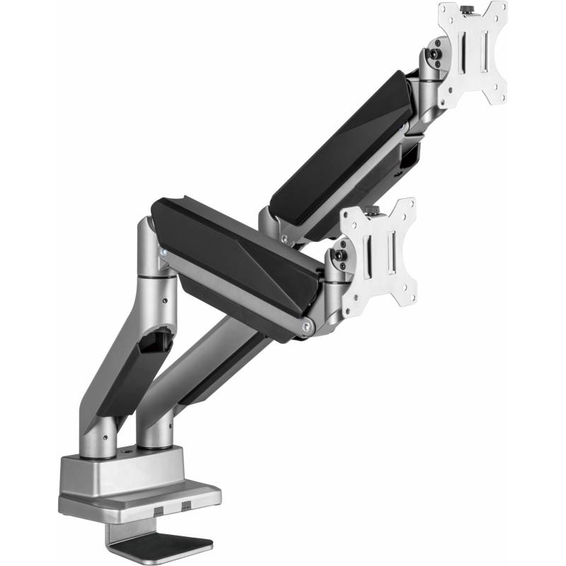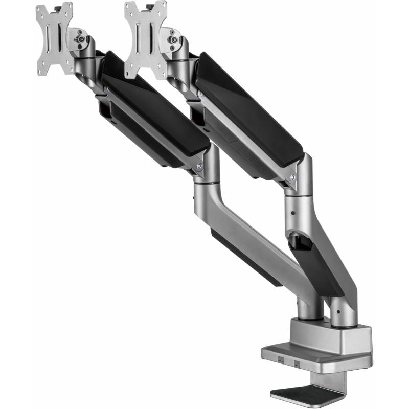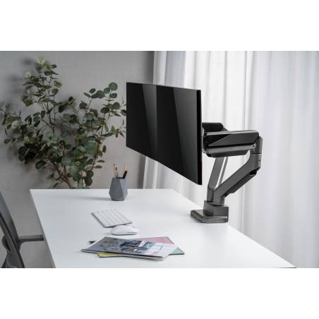 - Настольный кронштейн для монитора с системой газ-лифт. Конструкция со свободным наклоном позволит легко регулировать наклон вперед или назад для лучшего обзора и уменьшения бликов.
