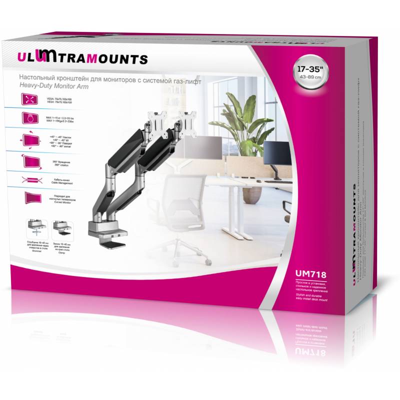 Кронштейн для мониторов Ultramounts UM718 серый 17"-35" макс.15кг крепление к столешнице поворот и наклон