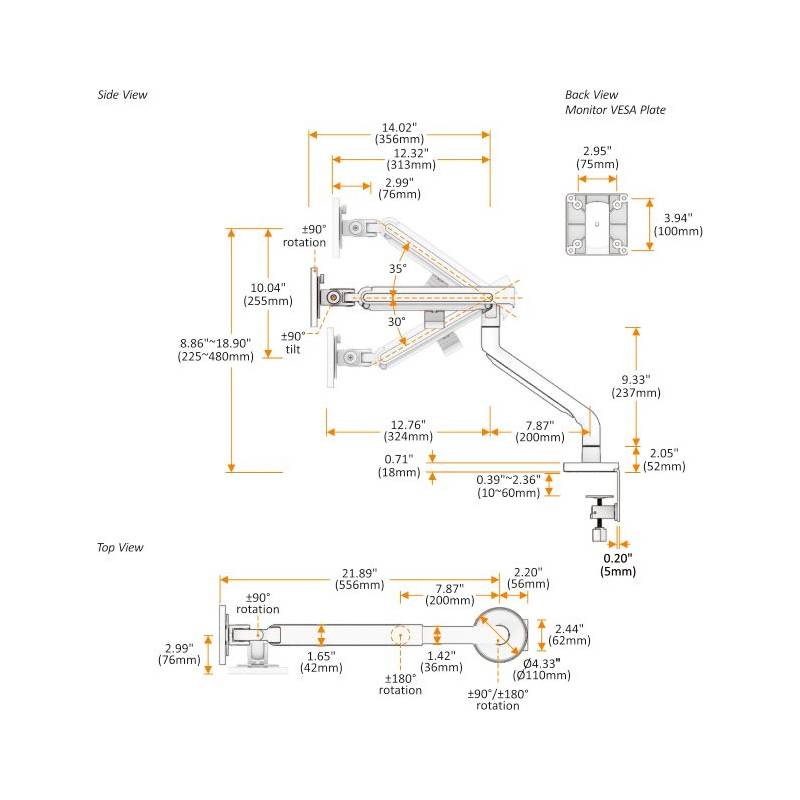 Кронштейн для мониторов Ultramounts UM725W белый 17"-32" макс.9кг крепление к столешнице поворот и наклон