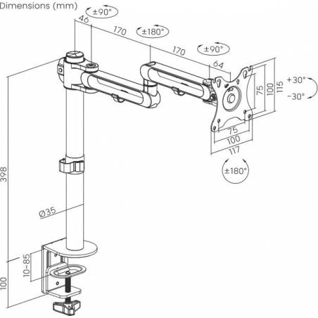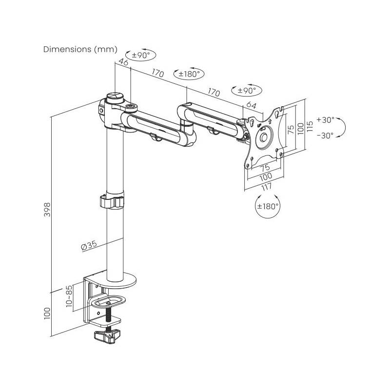 - Настольный кронштейн для монитора с системой газ-лифт. Пружинный механизм позволяет легко перемещаться вверх и вниз.