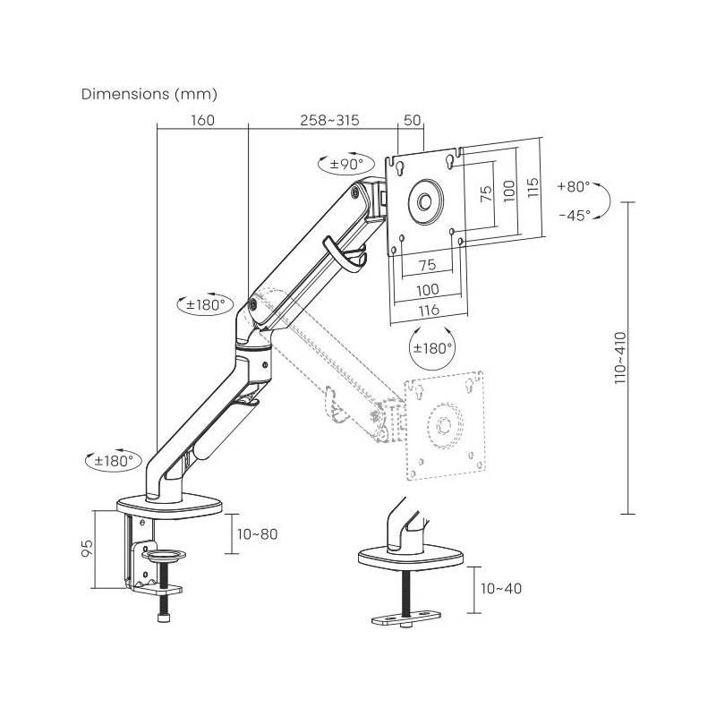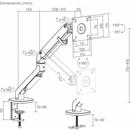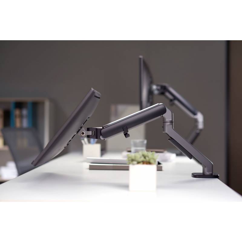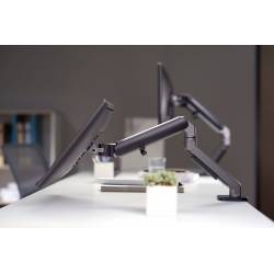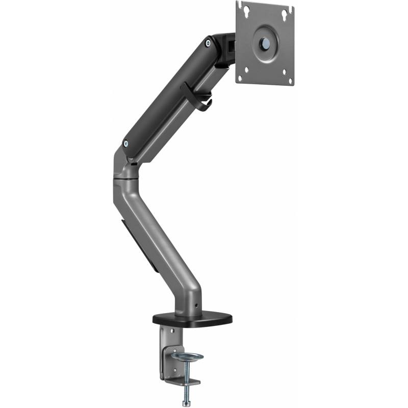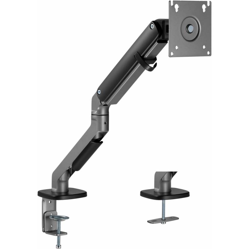 - Настольный кронштейн для монитора с системой газ-лифт. Пружинный механизм позволяет легко перемещаться вверх и вниз.