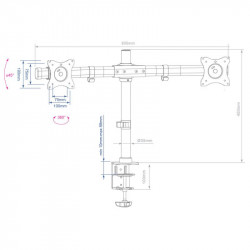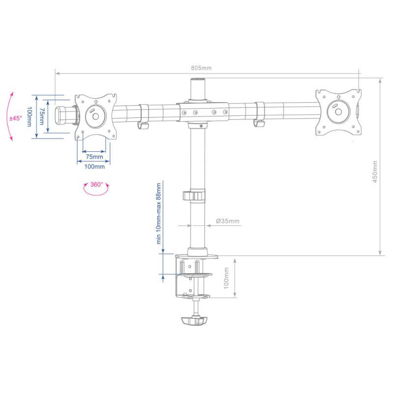 - Мониторы на кронштейне можно: вращать на 360° в горизонтальной плоскости, наклонять вверх и вниз, и поворачивать влево и вправо. Кабель-канал. Два варианта установки на столешницу: за край стола и на поверхность стола.