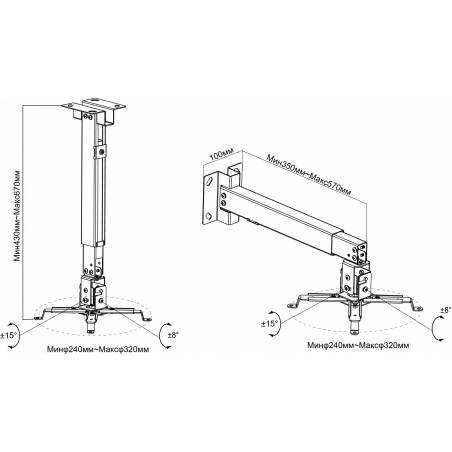 Кронштейн для проектора Cactus CS-VM-PRE01-WT белый макс.20кг настенный и потолочный поворот и наклон