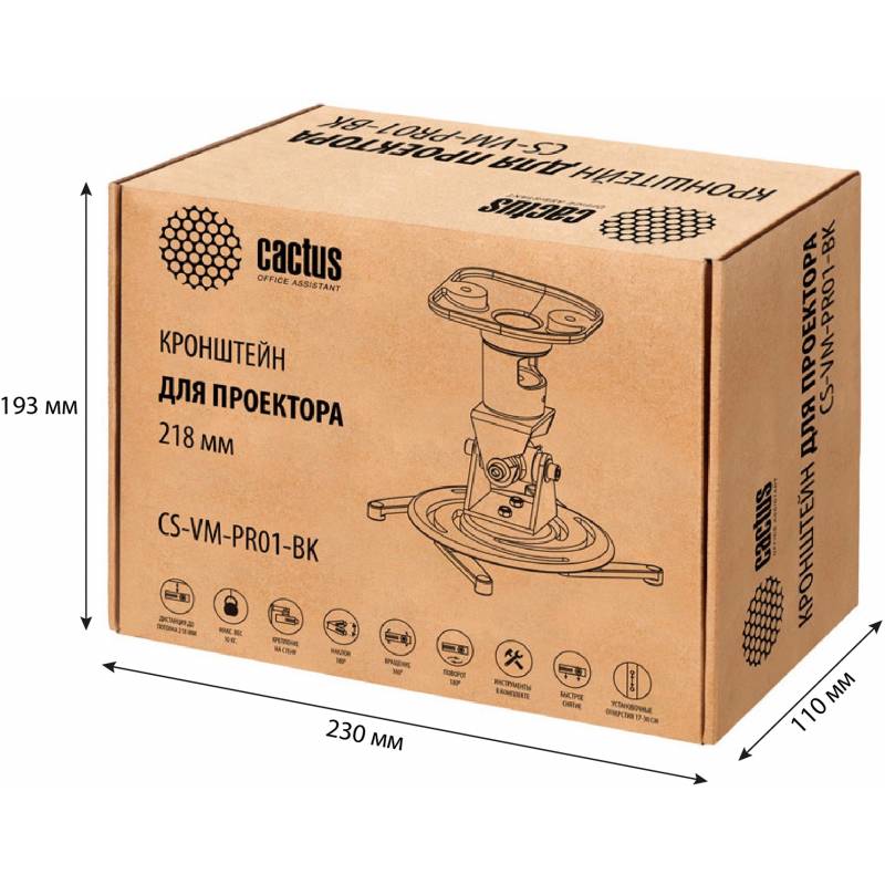 Кронштейн для проектора Cactus CS-VM-PR01-BK черный макс.10кг потолочный поворот и наклон