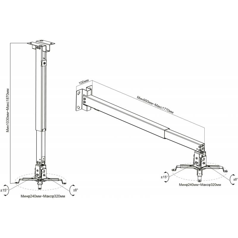 Кронштейн для проектора Cactus CS-VM-PRE04-WT белый макс.20кг настенный и потолочный поворот и наклон