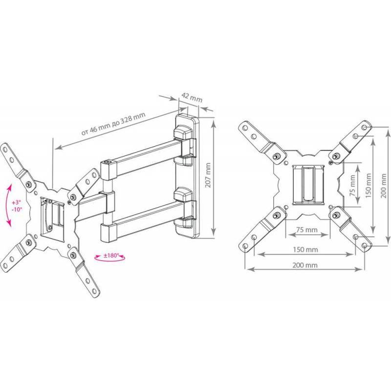 Кронштейн для телевизора Kromax GALACTIC-12 черный 15"-42" макс.25кг настенный поворот и наклон
