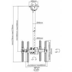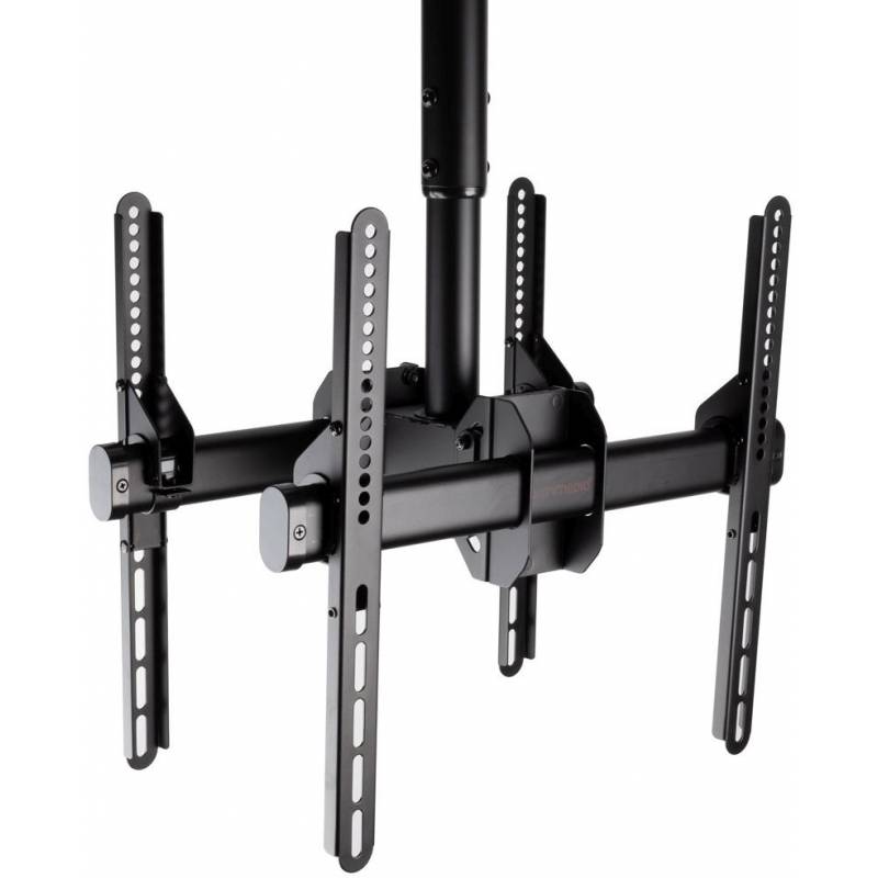 - Потолочный кронштейн для LCD/LED телевизоров размером от 26 до 65 дюймов с максимальным весом до 2 x 45 кг с возможностью крепления на наклонный потолок. Надежная стальная конструкция. Регулировка наклона +5 -20 и углом поворота ±180 градусов. Максимальны