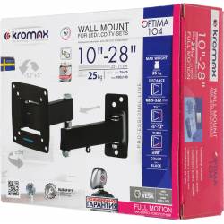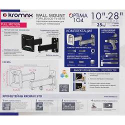 Кронштейн для телевизора Kromax OPTIMA-104 черный 10"-28" макс.25кг настенный поворотно-выдвижной и наклонный