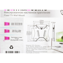 - Ультратонкое настенное крепление позволяет разместить телевизор максимально близко к стене. Кронштейн, состоящий из двух частей, легко установить. В комплект поставки входит необходимый для монтажа крепеж.
