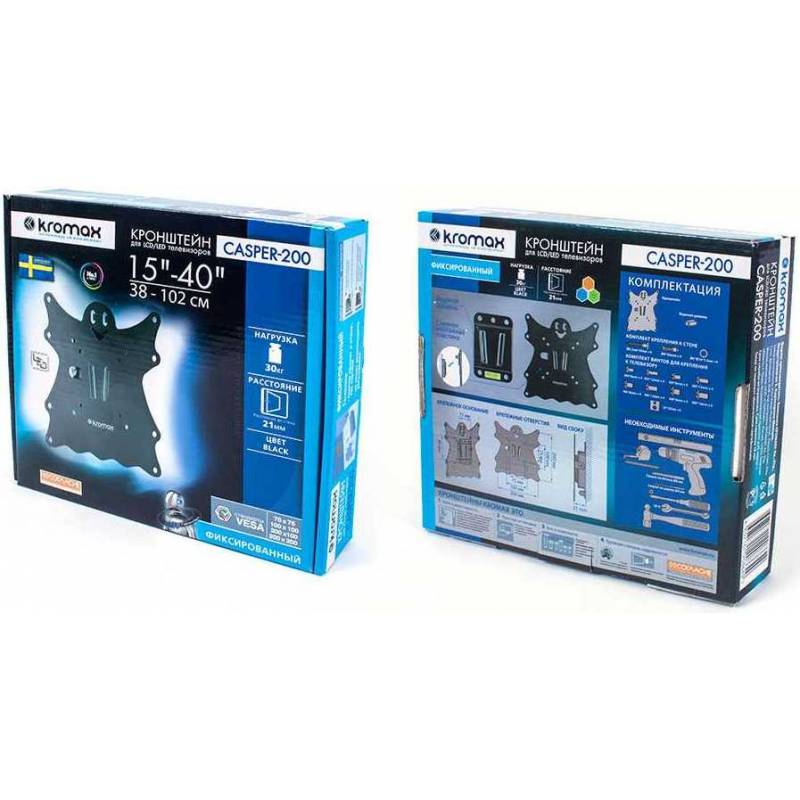 Кронштейн для телевизора Kromax CASPER-200 черный 15"-40" макс.30кг настенный фиксированный