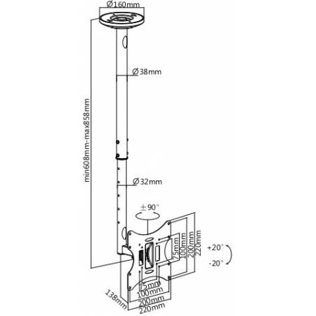 Кронштейн для телевизора Ultramounts UM890 черный 17"-43" макс.30кг потолочный поворотно-выдвижной и наклонный