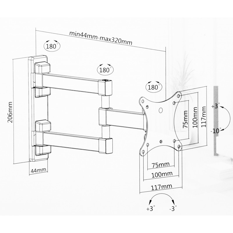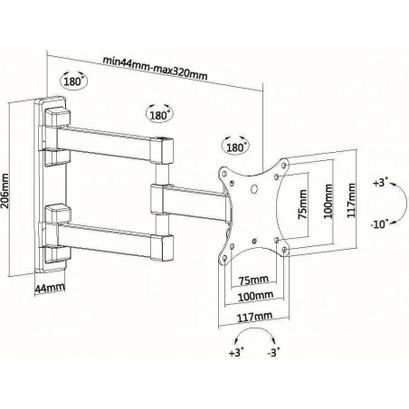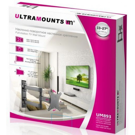 Кронштейн для телевизора Ultramounts UM893 черный 13"-27" макс.20кг настенный поворотно-выдвижной и наклонный