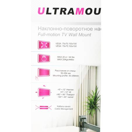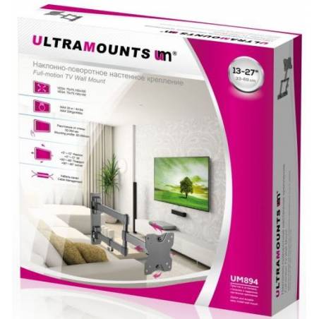 Кронштейн для телевизора Ultramounts UM894 черный 13"-27" макс.20кг настенный поворотно-выдвижной и наклонный